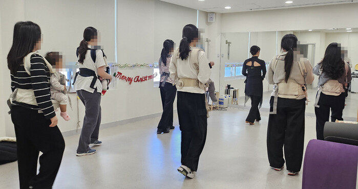 | ▲ 구로구 모자건강센터에서 캥거루 라인댄스를 배우는 모습. (사진=구로구청 제공) |