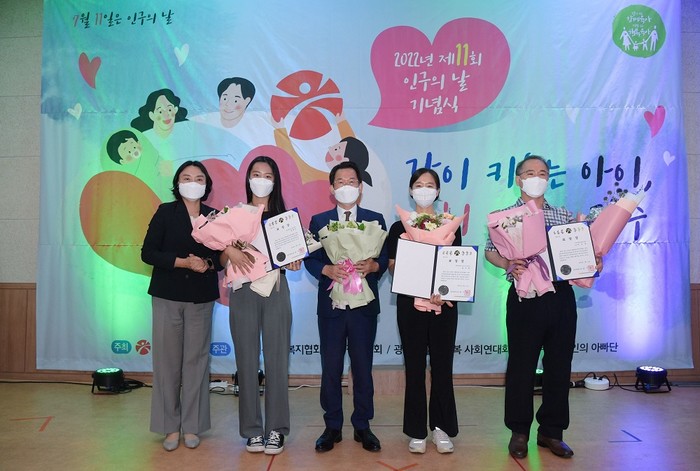 | ▲ 문영훈 광주광역시행정부시장이 11일 오후 시청 무등홀에서 열린 '제11회 인구의 날 기념식'에 참석해 유공자 표창을 한 뒤 기념촬영을 하고 있다./광주광역시 제공 |