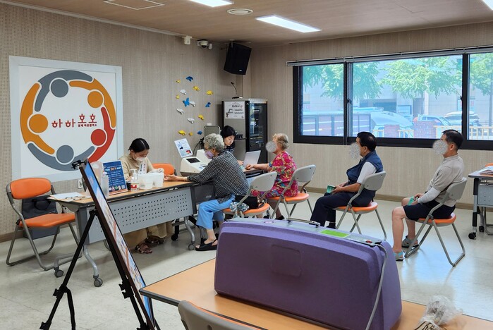 | ▲ 서대문구 건강나눔카페에서 주민들이 혈압 혈당 측정을 받고 있다. (사진=서대문구청 제공) |