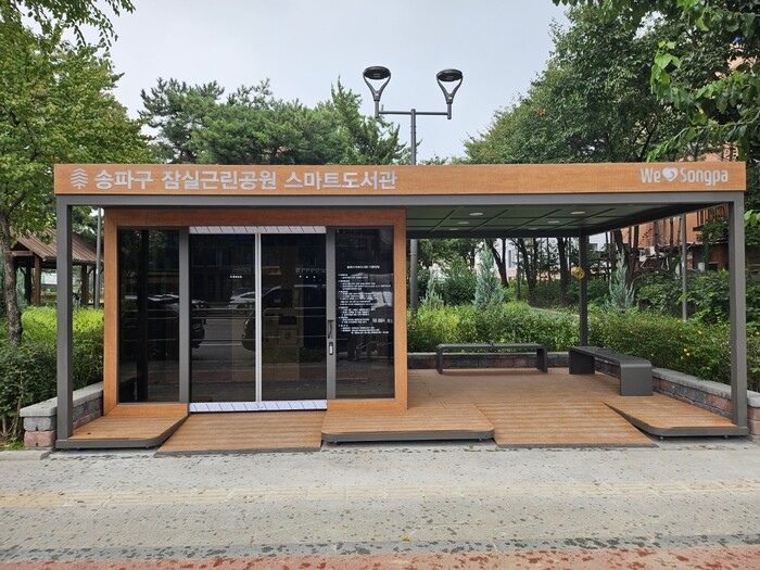‘송파스마트도서관 8호(잠실동 230)’는 잠실근린공원에 새롭게 자리 잡았다. 구는 공원 인근 초등학교와 편리한 대중교통으로 책 수요가 많을 것으로 내다보고, 이곳을 설치장소로 낙점했다. 부스 한쪽에는 공원과 어울리는 ‘독서쉼터’를 조성해 벤치에 앉아 책을 읽으며 쉬어가도록 꾸몄다.