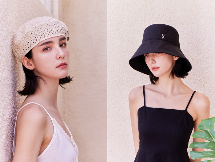 이외에도 우아한 실루엣을 살린 버킷 햇과 미니멀한 무드의 커브 캡으로 다양한 스타일링을 제안한다.