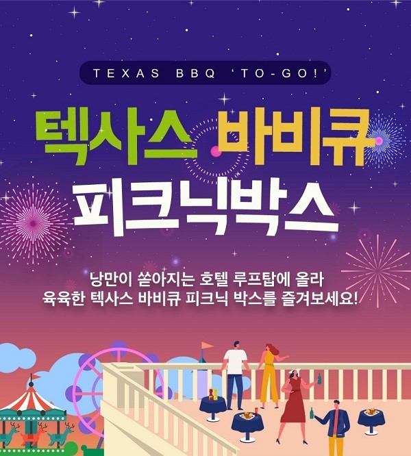 특히 여름을 맞이해 2층 로즈마리에서 호텔 기능장, 명인 셰프 그룹이 선사하는 텍사스 바비큐와 함께 다양한 최고급 요리를 즐길 수 있는 뷔페인 ▲텍사스 바비큐 with Chef’s Delight 뷔페와 더불어 무더운 더위를 잊고 에버랜드의 불꽃쇼를 감상할 수 있는 루프탑 또는 객실에서 여유롭게 즐길 수 있는 테이크-아웃 타입의 ▲텍사스 바비큐 피크닉 박스 상품 출시를 통해 이용객들에게 폭넓고 다채로운 저녁 식사를 제공한다. 더불어 텍사스 바비큐 with Chef’s Delight 뷔페와 텍사스 바비큐 피크닉 박스 이용 시 리뉴얼 오픈 기념으로 7월 한 달간 할인된 가격의 프로모션 또한 준비되어 있다.