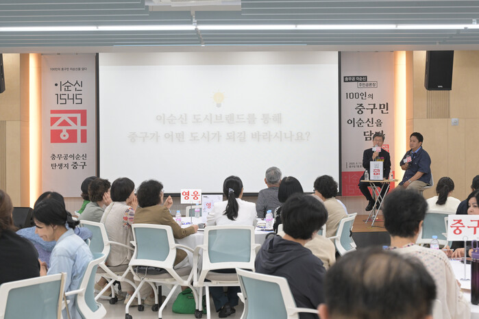 [시민일보 = 여영준 기자] 중구(구청장 김길성)가 최근 구청 7층에서 주민 100여 명이 참여한 가운데 충무공 탄생지 중구의 주민공론장 '100인의 중구민 이순신을 담다'를 열었다.