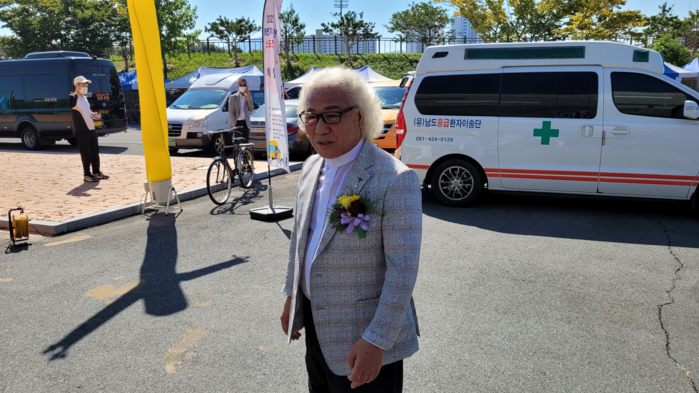 | ▲ 전남 지체장애인 협회 김기철 협회장이 개막식을 마치고 경기에 나선 선수들을 격려하기 위해 경기장으로 나서고 있다.(사진=황승순 기자) |