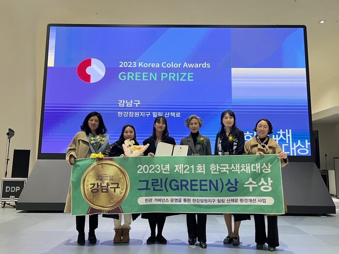 [시민일보 = 이대우 기자] 강남구(구청장 조성명) 신사나들목 잠원한강공원 진입로 일대에 조성된 힐링 산책로가 ‘제21회 한국색채대상’ 공간환경 부문에서 그린(GREEN)상을 수상했다.