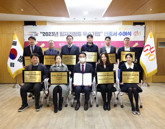 [시민일보 = 이대우 기자] 구로구(구청장 문헌일)가 지역주민 고용과 고용환경 개선에 노력한 기업을 ‘2023년 일자리창출 우수기업’으로 선정하고 인증서와 현판을 수여했다고 12일 밝혔다.