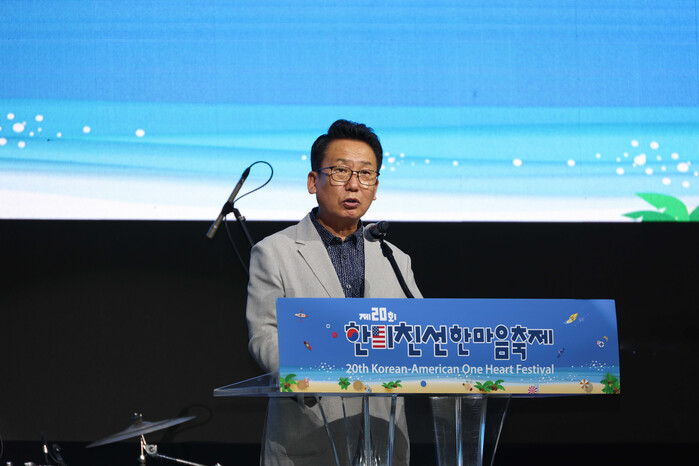 | ▲ 사진=제20회 한미친선 한마음축제 축사하는 강정구 평택시의회의장. |