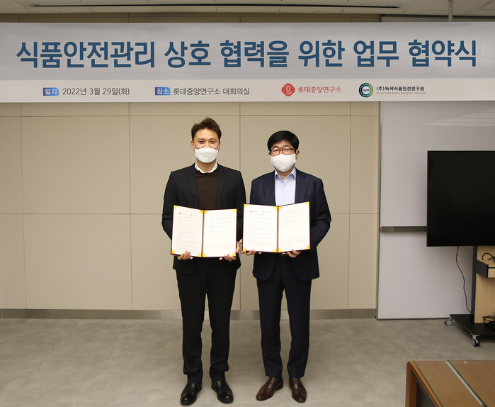 이날 맺은 협약에 따라 롯데중앙연구소는 향후 녹색식품안전연구원과 식품안전사고 예방을 위한 위기관리 대응 시스템 구축 등 식품안전 관리 업무 전반에 걸쳐 협력할 예정이다.