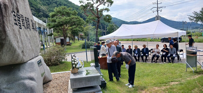 [합천=이영수 기자] 8월 11일 가회 체육공원에 위치한 가회전투 전적비 앞에서 ‘가회전투 전적비 추념식’이 거행됐다.