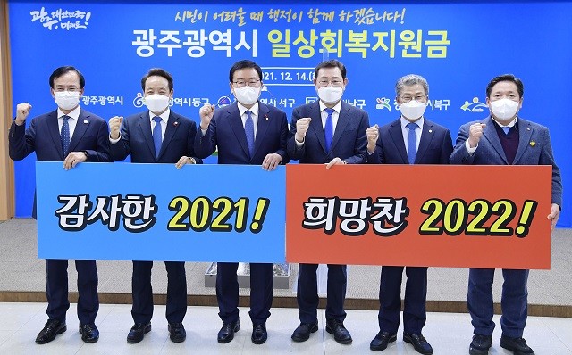 [광주=정찬남 기자] 광주광역시와 5개 자치구는 내년 초 모든 시민에게 1인 당 10만 원씩의 일상회복지원금을 지급한다고 밝혔다.