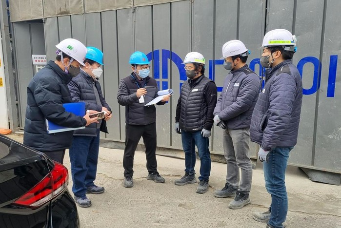 서울 서대문구는 최근 지역내 건축공사장 24곳과 해체공사장 6곳, 급경사지 19곳 등 49곳에 대한 민·관 합동 안전점검을 실시해 흙막이 시설 변형, 인접 도로 침하, 주변 구조물 균열, 타워크레인 및 배수시설 이상 여부 등을 살폈다. 사진은 점검단이 지역내 건축공사장을 찾아 점검을 하고 있는 모습. (사진제공=서대문구청)