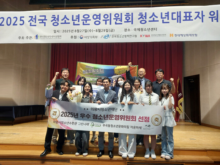 [의왕=송윤근 기자] 경기 의왕시청소년재단 산하 의왕시청소년수련관 청소년운영위원회 ‘그린나래’와 부곡동청소년문화의집 ‘라온하제’가 지난 27일 ‘2025년 전국 우수 청소년운영위원회 선정 사업’에서 각각 최우수상과 우수상을 수상했다.