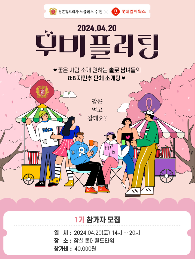 노블레스 수현 관계자는 “노블레스 수현과 롯데컬처웍스가 함께하는 특별한 단체 미팅 기획에 대기업, 전문직, 자영업, 교사, 일반 직장인 등 다양한 직군 종사자들이 많은 관심을 보이고 있으며, 벌써 200명 넘게 참가 신청이 들어왔다. 만약 이번에 당첨이 되지 않더라도 해당 이벤트는 매월 1회 진행할 계획이기 때문에 부담 없이 신청해보기 바란다”고 전했다.