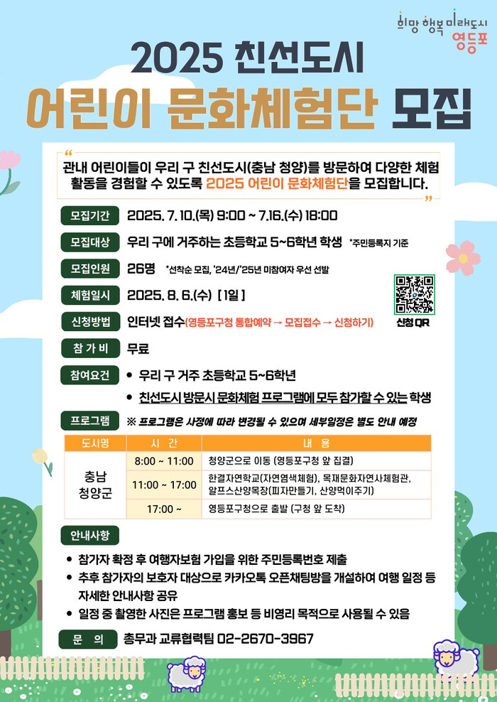 | ▲ 2025 친선도시 어린이 문화체험단 모집 안내문. (사진=영등포구청 제공) |