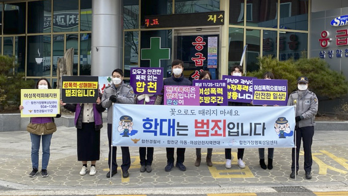 합천군아동·여성안전지역연대(위원장 최용남 부군수)에서는 지난 25일 여성폭력 추방주간(11.25~12.1)을 맞아 여성폭력근절을 위한 홍보 캠페인을 펼쳤다.