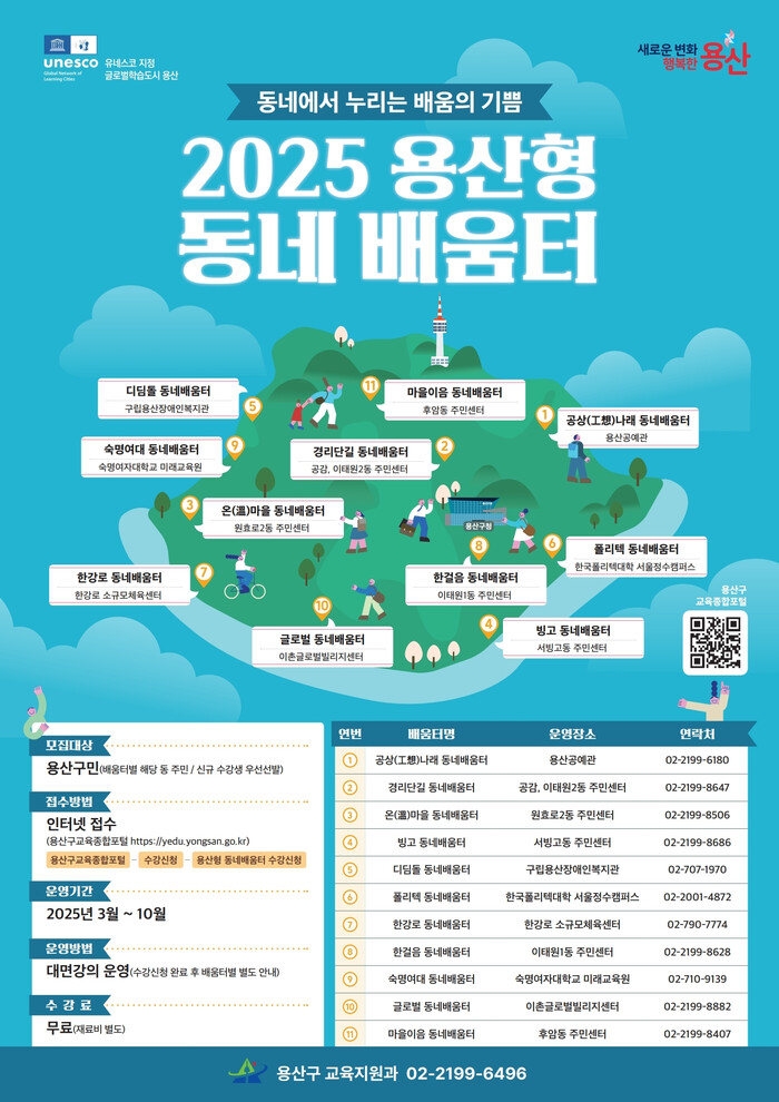 [시민일보 = 문민호 기자] 서울 용산구(구청장 박희영)가 오는 24일까지 ‘2025 용산형 동네배움터 3기’에 참여할 수강생 총 53명을 모집한다.