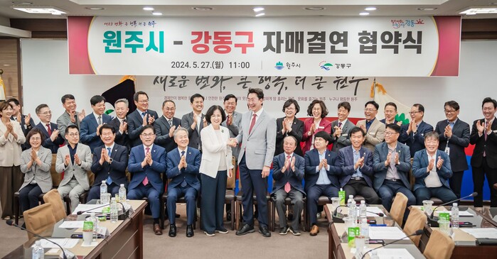 원주시청에서 진행된 이날 협약식에는 이수희 강동구청장과 원강수 원주시장을 비롯해 양 도시 의회 의원들과 관계 공무원 30여명이 참석했다.