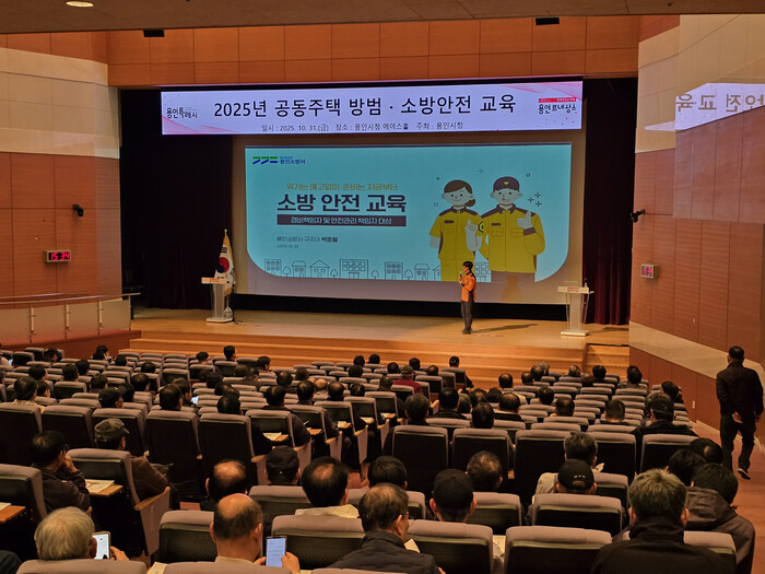 [용인=오왕석 기자] 용인특례시(시장 이상일)는 10월 31일 시청 에이스홀에서 지역 내 의무관리 대상 공동주택 471곳의 경비책임자와 시설물 안전관리책임자를 대상으로 방범·소방 안전교육을 실시했다고 4일 밝혔다.