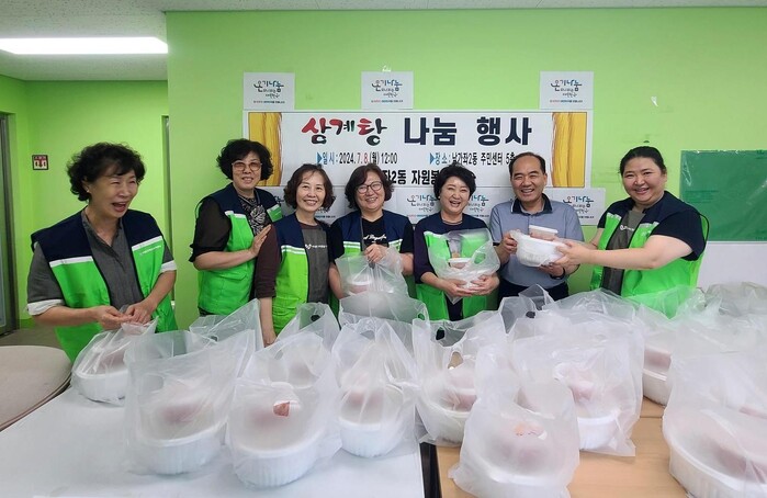 | ▲ 서대문구 남가좌2동 자원봉사캠프가 취약계층 이웃을 위한 삼계탕 나눔으로 많은 박수를 받았다. (사진=서대문구청 제공) |