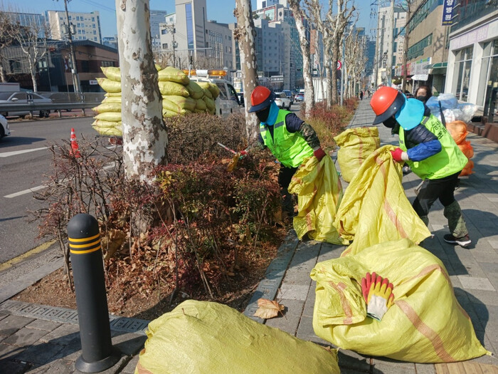 정비 대상지는 가로수 1만 2039주와 띠녹지·일반녹지 등 가로변 녹지대 22만7153㎡로, 구는 겨울철 동안 설치된 차단막을 걷어내고, 겨울 동안 쌓인 낙엽과 쓰레기를 정리하는 작업을 시작한다.