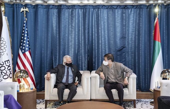 이어, 미국관을 방문, 미국과 인류의 혁신적 발전에 대한 부분을 상세히 다루고 있는 전시를 둘러보고 로버트 클라크(Robert G. Clark) 커미셔널제너럴(comissioner General)을 만나 2030세계박람회 부산 유치에 힘을 실어달라고 요청했다.