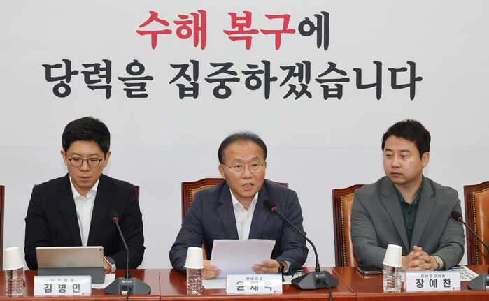 윤재옥 원내대표는 이날 국회에서 열린 최고위원회의에서 "민주당 의원들이 수원지검을 찾아가 조작 수사를 중지하라고 외치는 등 갖가지 방법으로 이화영 전 경기도 부지사의 진술 번복을 압박했다"며 "검찰의 수사가 쌍방울그룹 대북 송금 사건의 실체에 점점 다가서면서 이 대표에 대한 민주당의 방탄 시도가 사법 방해 수준에 이르고 있다"고 비판했다.