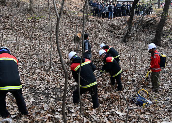 | ▲ 7일 노원구 중계동 불암산공원(재현중학교 뒤편)에서 일반공무원 진화대 및 산불전문예방진화대를 대상으로 산불진화 이론교육 및 현장 실습을 실시하고 있다. (사진=노원구청 제공) |