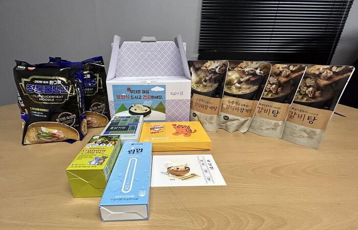 꾸러미는 어르신들의 건강한 여름나기를 위해 무더운 여름철 대표 보양식으로 꼽히는 삼계탕과 갈비탕, 냉면, 기력 보충을 위한 비타민과 홍삼 등으로 다양하게 구성했다.