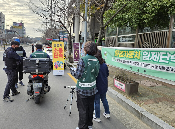 군은 총 12대의 운행차에 대해 현장 점검을 실시했으며, 주요 단속 내용은 △미인증 등화장치 장착 △후부반사판 설치상태 불량 △소음허용기준 위반 △등록번호판 미부착 또는 훼손, 가림 △무보험 운전 방지근절 위한 차량 보험가입 홍보 등 이다.