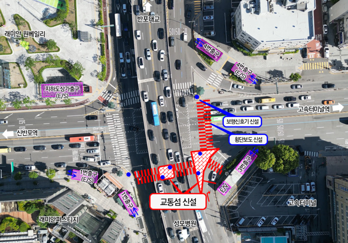 이번에 설치된 횡단보도는 ‘반포동사거리’와 ‘효령로 지웰아파트 앞’으로, 특히 반포동사거리 횡단보도는 15년간 지하상가 상인들의 반대로 설치가 어려웠던 곳이다. 상인들의 상생 협조를 얻어, 구는 고속터미널과 반포한강공원을 잇는 공공보행통로 개방과 같은 다양한 조치를 통해 최종적으로 합의를 이끌어냈다.