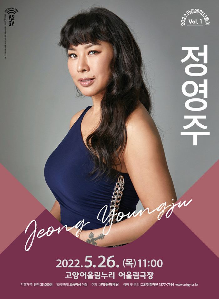 올해도 최고의 감동을 전해줄 2022 아침음악나들이의 첫 번째 공연은 드라마와 영화, 뮤지컬 무대를 종횡무진 오가며 활발하게 활동하고 있는 뮤지컬 배우 정영주의 무대로 오는 5월 26일(목) 고양어울림누리 어울림극장에서 개최된다.