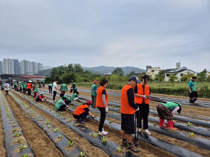 경기 광주시 오포권역 오포1동 등 4개동 새마을지도자협의회와 새마을부녀회는 최근 새마을농장에서 ‘사랑의 김장배추 심기’를 진행해 배추 모종과 무를 심었으며, 올 연말에 수확해 사랑의 김장 나눔 행사를 통해 지역내 홀몸노인 등에 전달할 예정이다. 사진은 이날 참여한 봉사자들이 김장배추를 심고 있는 모습. (사진=광주시청 제공)