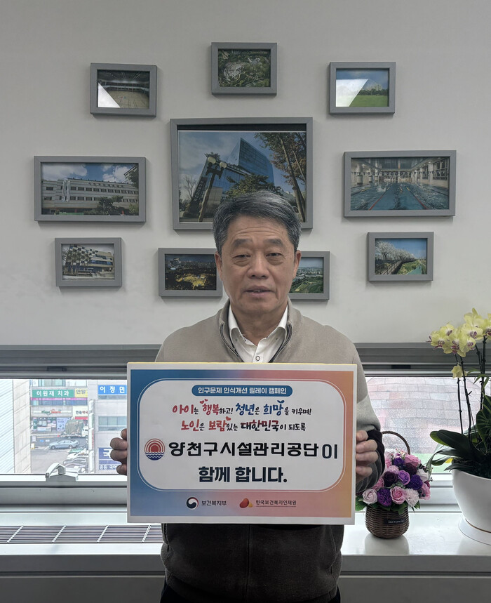 [시민일보 = 박소진 기자] 양천구시설관리공단이 최근 보건복지부와 한국보건복지인재원이 주관하는 ‘인구문제 인식개선 캠페인’에 동참했다고 7일 밝혔다.