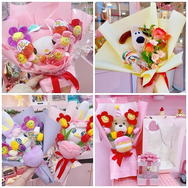 해당 매장에서는 인형꽃다발을 전문적으로 제작하며 인형은 KC인증을 받은 것만 사용하고 인형 외 구성품들과 꽃 색상은 모두 자유롭게 선택할 수 있도록 했다. 모든 과정을 직접 제작하고 있어 종류에 따라 3~4일 전에 예약해야 하는 품목도 있으며 대부분은 당일과 하루 전날에도 가능하도록 한 상태다.