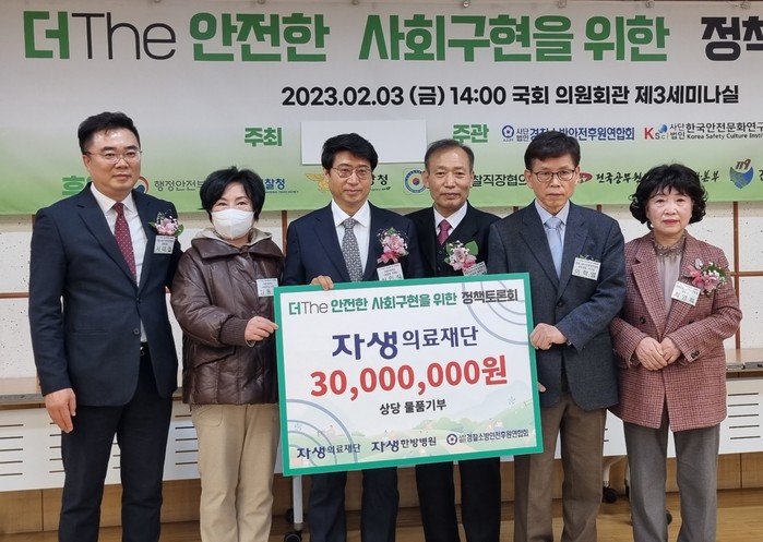 이날 서울 영등포구에 위치한 국회의사당 강당에서 열린 ‘자생 쌍화차 지원’ 전달식에는 자생의료재단 신민식 사회공헌위원장(잠실자생한방병원장)과 경찰소방안전후원연합회 이학영 회장 등 양 기관 주요 관계자가 참석했다.