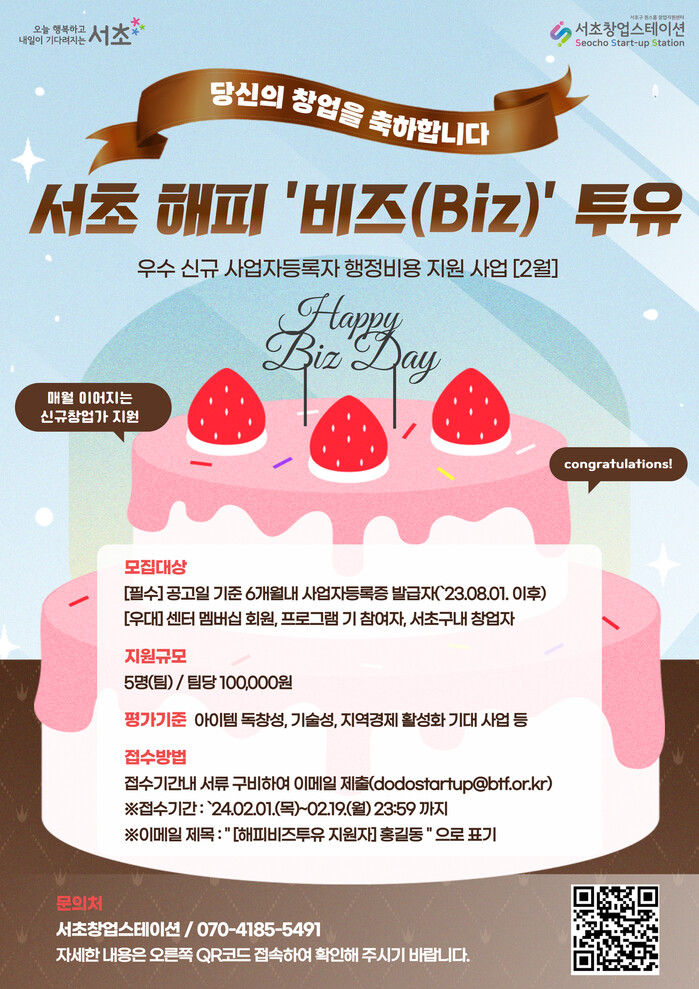 [시민일보 = 이대우 기자] 서초구(구청장 전성수)가 이달부터 ‘서초 해피비즈(Biz)투유‘ 사업을 실시한다.