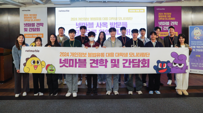 넷마블에 따르면 대학생 모니터링단은 오는 12월까지 개인정보 불법 유통 게시물 탐지 활동 참여, 개인정보 보호 주요 서비스 체험과 홍보 등 개인정보 보호에 대한 인식을 제고하는 다양한 활동을 수행한다.