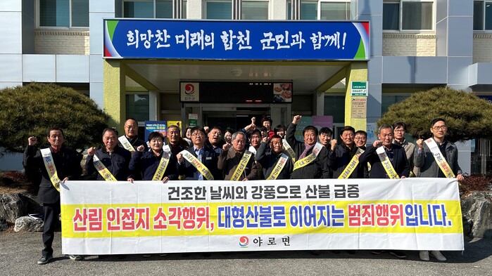 한준열 야로면 주민자치위원장은 “올해도 산불 발생 없는 야로면을 만들기 위해 한마음으로 다 모여서 결의하는 자리를 가지고 되어 책임감을 느끼며 앞으로 위원 여러분과 산불예방을 위해 적극 협조하겠다”고 밝혔다.
