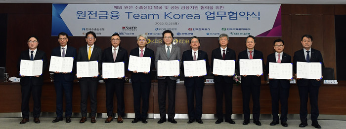 [시민일보 = 여영준 기자] 한국전력(이하 한전)과 한국수력원자력(이하 한수원)은 지난 23일 산업은행 본점에서 산업은행, 수출입은행, 무역보험공사 등 국내 정책·민간금융기관과 해외원전 수출사업 공동 금융지원 협력을 위한 '원전금융 Team Korea 업무협약(MOU'을 체결했다.