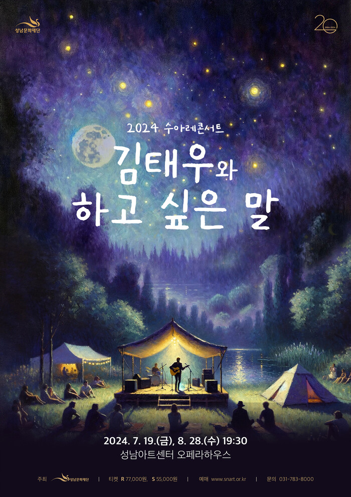 성남문화재단(대표이사 서정림)이 2024 수아레 콘서트 ‘김태우와 하고 싶은 말’ 공연을 오는 7월 19일(금)과 8월 28일(수) 2회에 걸쳐 성남아트센터 오페라하우스에서 개최한다.