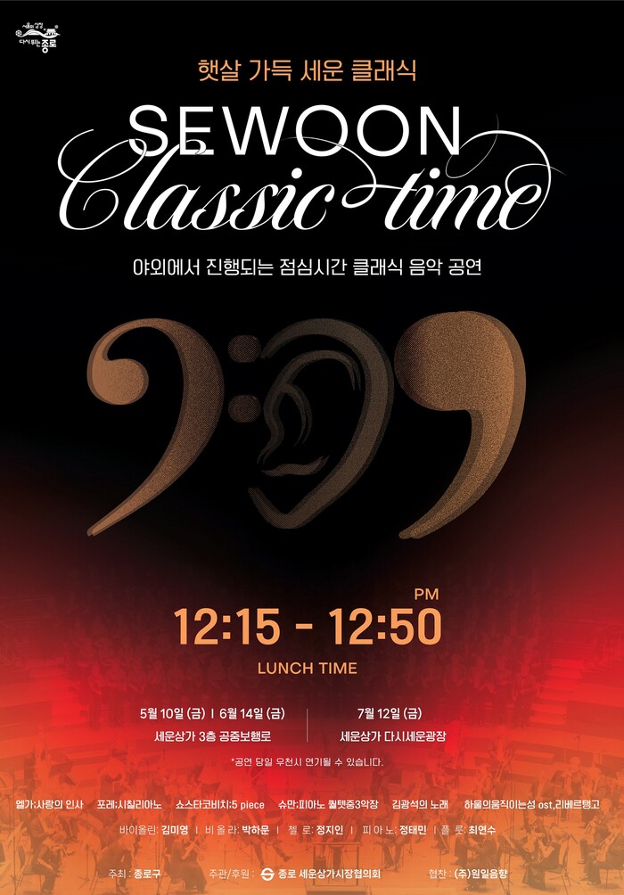 구는 “점심시간 대 세운상가를 찾은 주민, 관광객이 따사로운 햇살 아래 클래식 선율을 만끽하고 일상에서 소소하지만 문화가 있는 삶을 향유하길 바란다”라고 말했다.