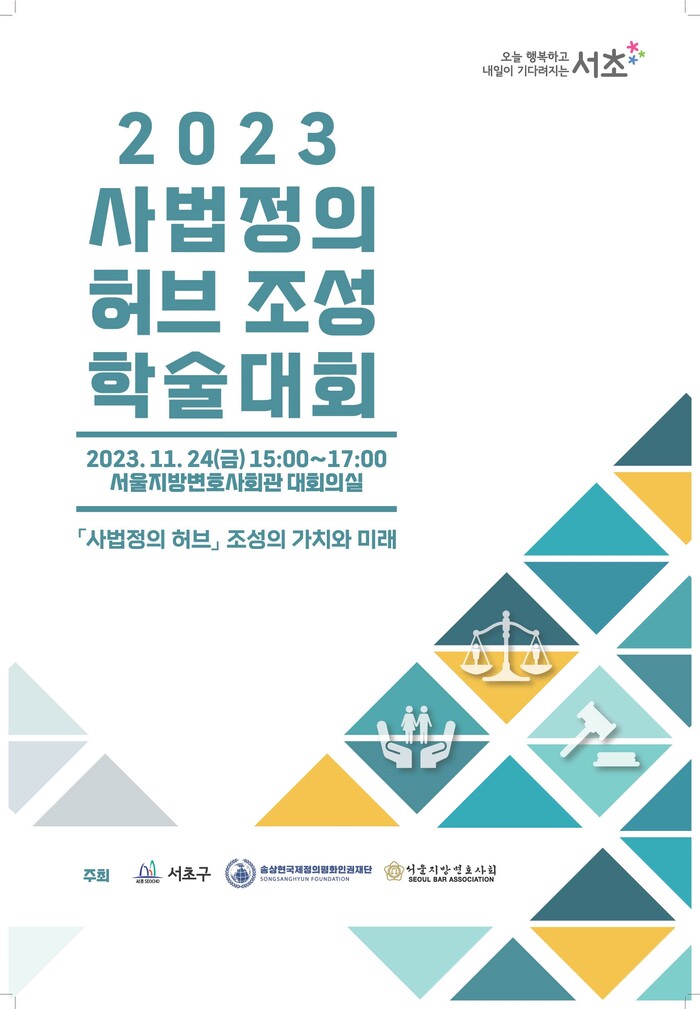 [시민일보 = 이대우 기자] 서초구(구청장 전성수)는 오는 24일 서울지방변호사회관에서 서초동 법조문화 중심 도약을 위한 ‘2023 사법정의 허브 조성 학술대회’를 개최한다.
