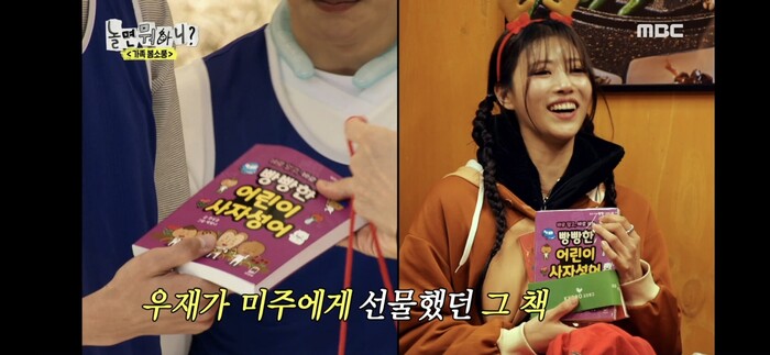 작년 연말 방송된 MBC 예능 프로그램 방송 ‘놀면 뭐하니?’에서 주우재와 이미주가 서로에게 책을 선물하며 큰 웃음을 선사했다.