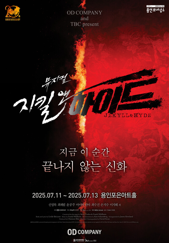 [용인=오왕석 기자] 용인문화재단(이사장 이상일)은 오는 7월 11일(금)부터 13일(일)까지 총 3회에 걸쳐 뮤지컬 《지킬앤하이드》 20주년 기념 공연을 용인포은아트홀에서 선보인다. 이 작품은 《지킬앤하이드》가 용인 무대에 처음 오르는 뜻깊은 자리로, 시민들의 큰 기대를 모으고 있다.
