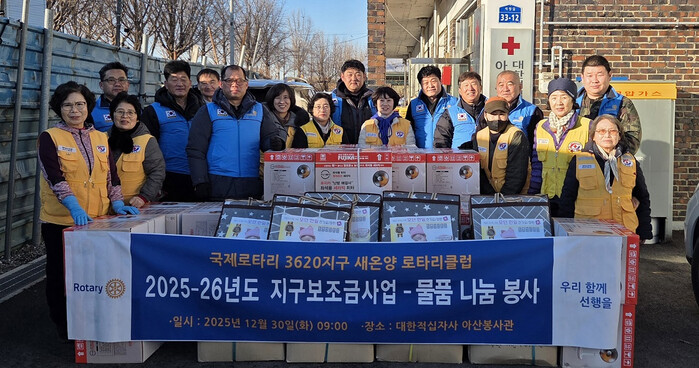 [아산=박명수 기자] 대한적십자사봉사회 충남 아산시협의회가 새온양로타리클럽과 함께 지난 12월30일 국제로타리 지구 보조사업의 일환으로 '사랑의 물품 나눔봉사'를 진행했다.