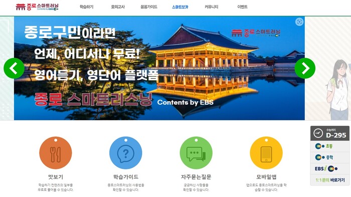 | ▲ 종로 스마트러닝 누리집 첫 화면 (사진=종로구청 제공) |