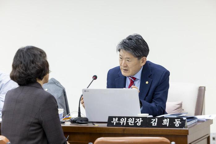 | ▲ 행정사무감사 중인 강서구의회 미래복지위원회 김희동 부위원장. (사진=강서구의회 제공) |