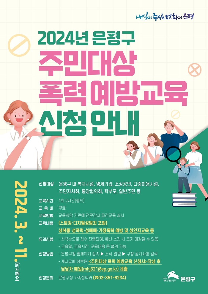 [시민일보 = 이대우 기자] 은평구(구청장 김미경)가 이달부터 ‘주민대상 폭력 예방교육’을 실시한다.
