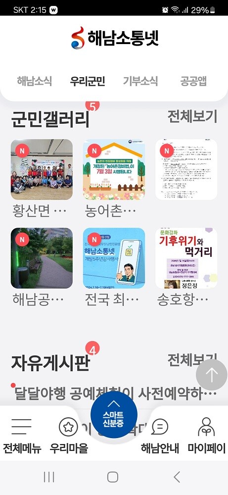 특히 군민들에게 실시간으로 필요한 소식을 제공되는 ‘해남소식’ 주민이 직접 참여해 일상생활에 활동한 사진이나 자유로운 글쓰기를 할 수 있는 ‘우리군민’코너, 지역마다 기부자를 자랑스럽게 소개하는 ‘기부소식’ 코너, 부서 별로 자체 개발된 모바일 앱을 탑재해 제공되는‘공공앱’코너 등을 구성해 군민들이 매일 새로운 소식을 접할 수 있도록 했다.