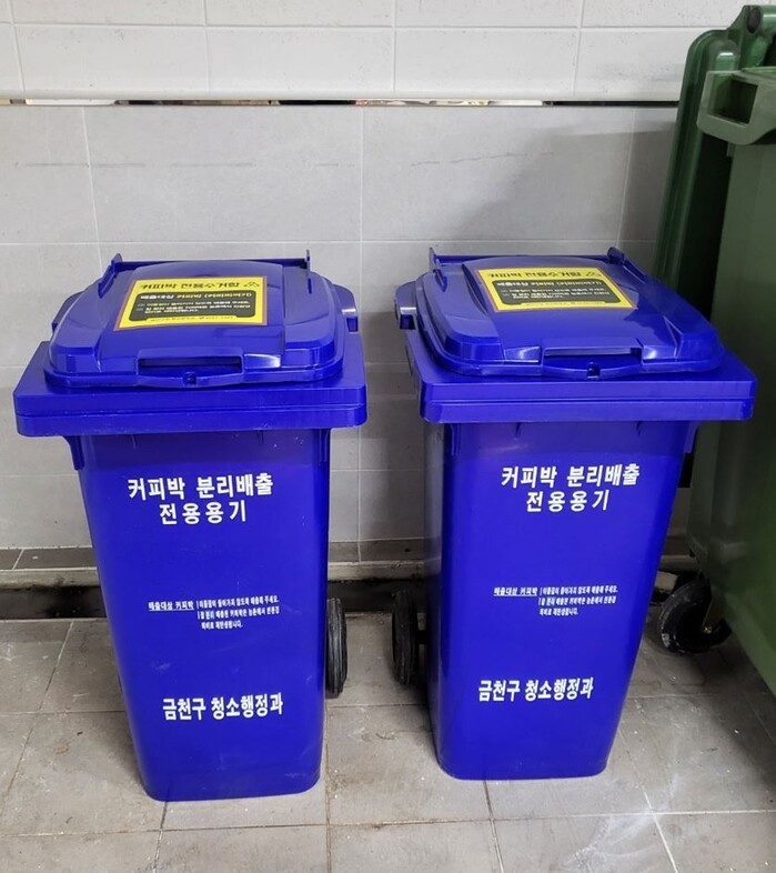 | ▲ 관내 설치된 커피박 수거함.(사진=금천구청 제공) |